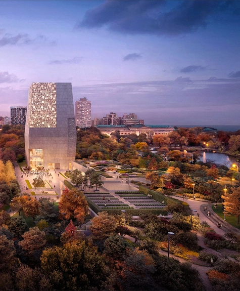 Eight months after former President Barack Obama and First Lady Michelle Obama revealed their vision for the Obama Presidential Center (OPC) in Jackson Park, on the south side of Chicago, the Obama Foundation has released more detailed plans and designs, which they say are the result of thousands of comments. The new plans are perhaps also a response to criticism that the Presidential Center "confiscates" some 19 acres of the historic, Olmsted-designed 543-acre Jackson Park, and, therefore, a parking structure planned for the nearby Midway Plaisance would further undermine the park's integrity. The Obama Foundation has since scrapped plans for the parking structure in favor of adding parking underneath the Center.