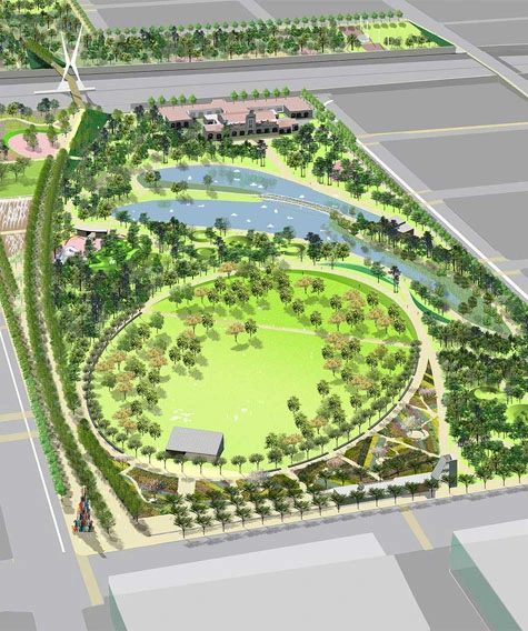Sources of revenue are built into the park. Low-maintenance native plants are being incorporated. Dirt from a large lake carved into Scissortail was used to build a hill, saving money.