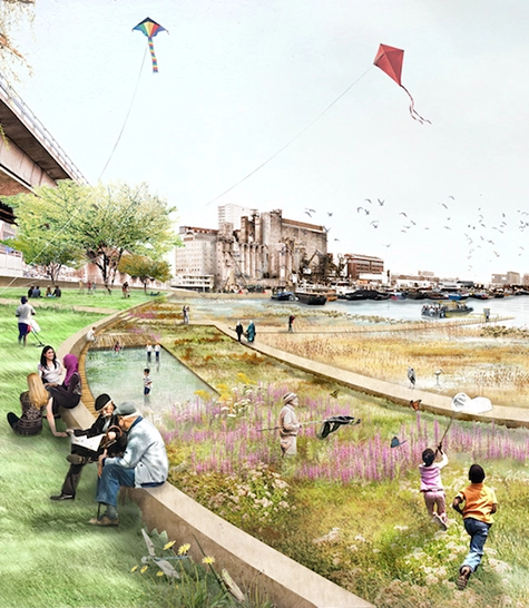 Han Dijk, an urban planner working with the city on its resilience plans, highlighted the tidal parks along the Nieuwe Maas -- also to be designed by De Urbanisten -- as central to creating a Rotterdam that can bounce back from repeated flooding. "The city will build new land with fill, soften the river's coasts, and open up and connect islands."