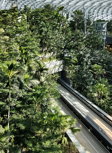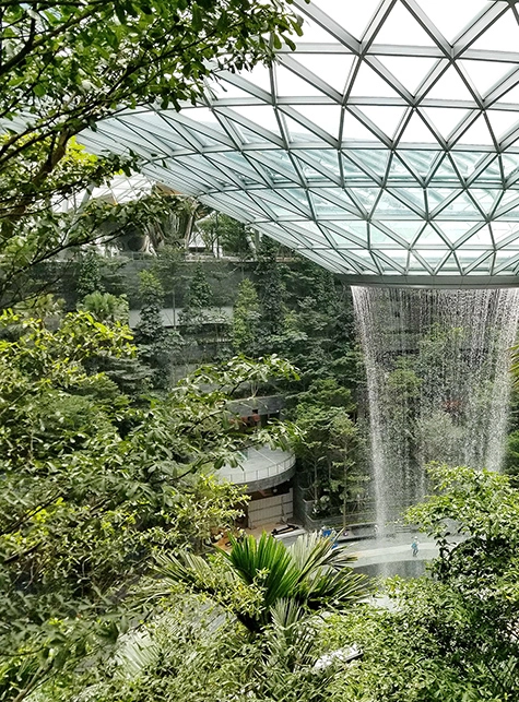 International airports are in fierce competition for passengers and regularly one-up each other with new wow-factor amenities, shops, and restaurants. But Singapore decided to raise its game by going another direction: a plant-filled haven, a gateway consistent with its moniker -- "the city in a garden." The result is an inventive model other airports should copy, if not in form, then certainly in spirit.