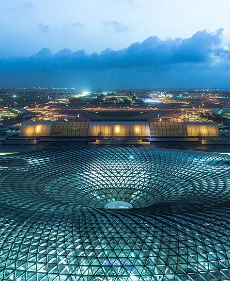 In addition to hosting some 300 shops and restaurants and a transit hotel, the terminal connects to the city's public bus system. Pedestrian bridges and an inter-terminal train link passengers and visitors to the airport's many gates.