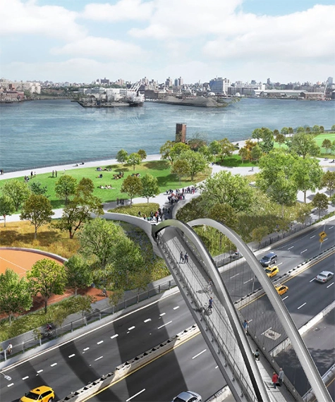 In the latest and nearly final designs, the team widened the important Delancey Street Bridge and created a continuous, accessible pathway across FDR Drive to the park.