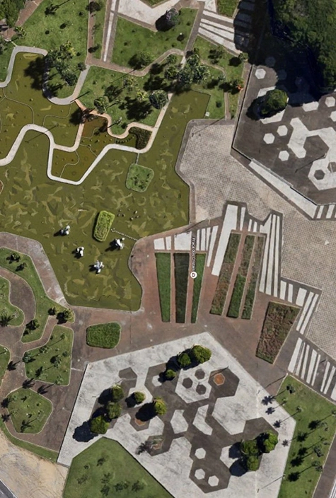 Google Earth view of Roberto Burle Marx's Gardens of the Ministry of the Army in Brasilia / Adam Nathaniel Furman on Twitter