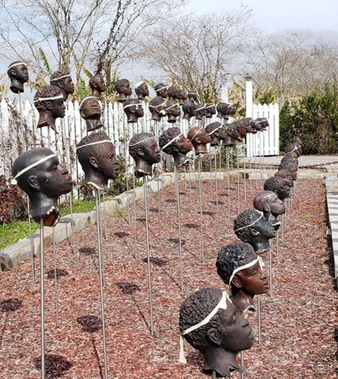 Also, Rush more recently created an art piece to honor the slaves who led and participated in the German Coast uprising on January 8, 1811. By June 13, the slaves had been defeated by the local militia. "And they had to pay the price of failure." Those captured were shot, decapitated in front of their families, and then their heads were put on spikes. "The artwork represents this but also presents them as an army."