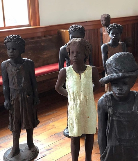 Attorney John Cummings purchased the land for $8 million, spent 15 years restoring the site, and commissioned life-sized clay sculptures of enslaved Creole adults and children that humanize them and breathe life into the history. Many of the sculptures, which were created by artist Woodrow Nash, are found within the historic African American Antioch Baptist Church, which was moved to the property.