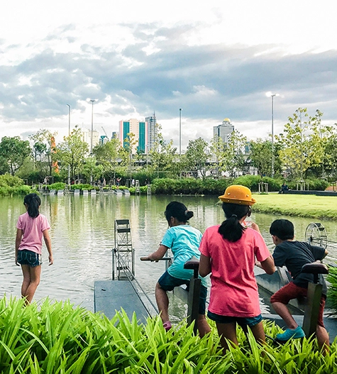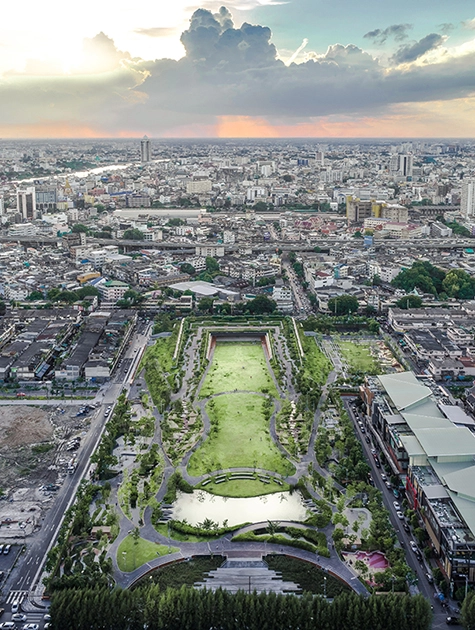 The 12-acre Chulalongkorn University Centenary Park in Bangkok, the first new park in the city in 30 years, is a model for how to design with nature. Tilted at 3 degrees, the park funnels storm water into a retention basin that can safely double in size amid heavy rains. How did you come up with this idea to incline the entire park?