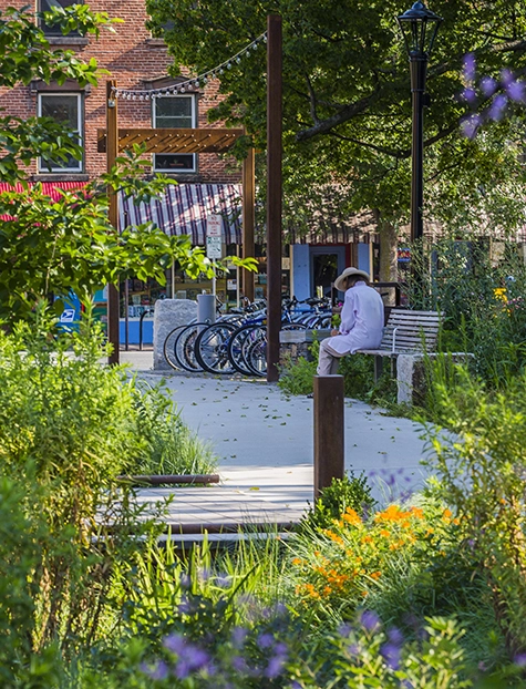 The pandemic shows how important it is to embed nature wherever possible along streets and in pocket parks, plazas, and courtyards. Those nearby-nature experiences become more critical given people's increasing time constraints and restrictions in traveling to big urban parks or nature preserves.