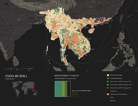 The Atlas for the End of the World, conceived by Richard Weller, ASLA, a professor of landscape architecture at the University of Pennsylvania, is one of the best sources for documenting our collective risk. Mapping 391 of the planet’s terrestrial eco-regions, this research identified 423 cities with a population of over 300,000 inhabitants situated within 36 biodiversity hotspots. Using data modelling from the Seto Lab at Yale University, the Atlas predicts that 383 of these cities—about 90 percent —will likely continue to expand into previously undisturbed habitats.