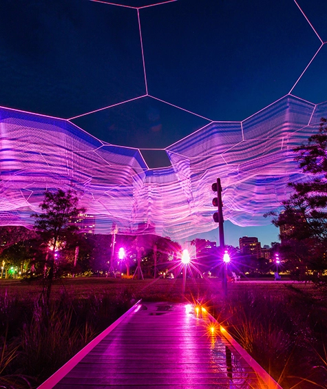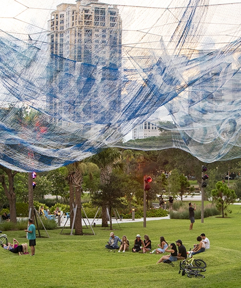 Conceptual landscape design was already moving forward when city leaders alerted Wilks that Echelman has been commissioned to bring one of her giant pieces to the park. On the phone over a weekend, they reached agreement on the location for the piece, which is called Bending Arc, in reference to Martin Luther King, Jr.'s words: "The arc of the moral universe is long, but it bends towards justice."