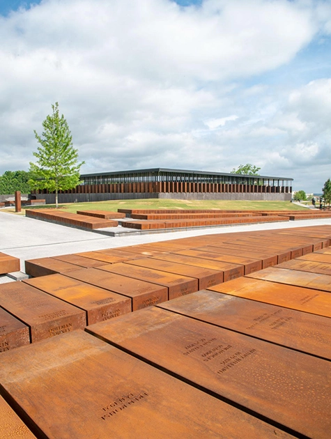 Yet, until the completion of the National Memorial to Peace and Justice, there were no sites that provided a means to interpret these atrocities so they might be appropriately set in the context of our history and serve as a sobering warning for future generations to stamp out the embers of hatred and violence. Located on six acres within the city of Montgomery, the scale of the memorial is impressive, and the experience is varied, employing a range of powerful interpretive methods.