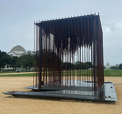 One example of such a memorial space is the recently unveiled Society’s Cage, which was initially installed in August, 2020 at the National Mall in Washington, D.C. and is intended to travel to multiple locations across the country. The memorial, which was designed by a team of mostly Black architects at SmithGroup, asks the question: “What is the value of a Black Life in America?”