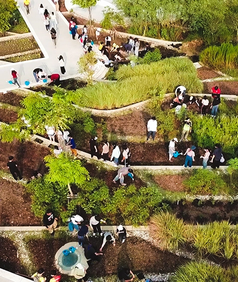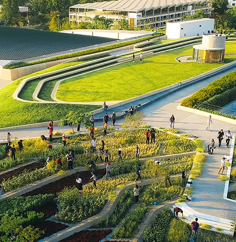 Through volunteering, 40,000 students and nearby residents learn about this cultural landscape and their heritage. They can volunteer on the roof and learn how to plant and harvest. They have access to workshops on agriculture, nutrition, and permaculture, which are embedded into the university's sustainability curricula.