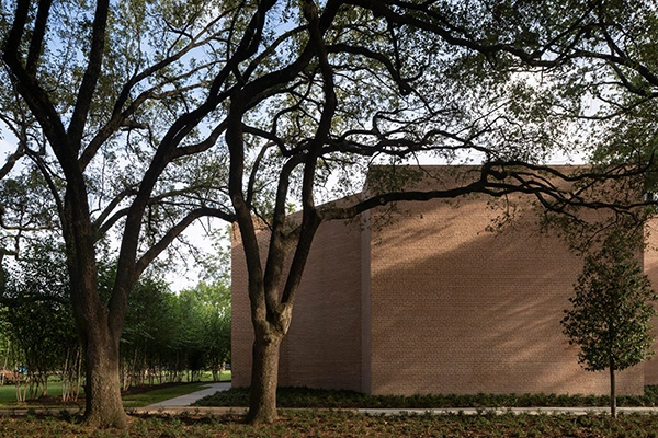 The firm explains: "these outdoor chambers provide visitors the time and space to physically and mentally prepare first for Broken Obelisk, then the Chapel, and finally Mark Rothko’s paintings. The sequence is calibrated to allow the eye to continually scale down while providing increasing shade in anticipation of the transition from the usually bright Texas sunlight to the Chapel’s interior. In reverse sequence, exiting the Chapel moves visitors through a range of spaces with tree-filtered views of the campus, allowing for quiet reflection in preparation for re-engaging with the city."