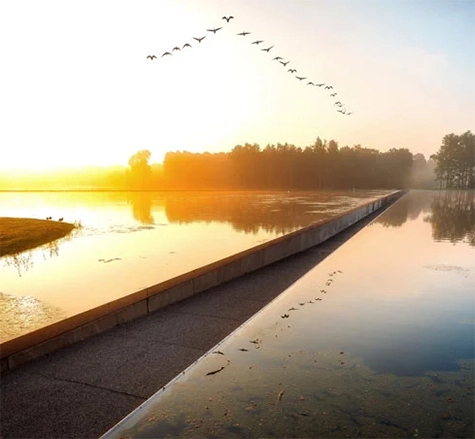 For some inventive landscape architects and architects in Europe, water bodies have presented an opportunity to create memorable, immersive experiences for the public. Instead of creating bridges that traverse lakes and moats, these projects bring cyclists and pedestrians through the water, creating seamless access to nature preserves and historic sites.