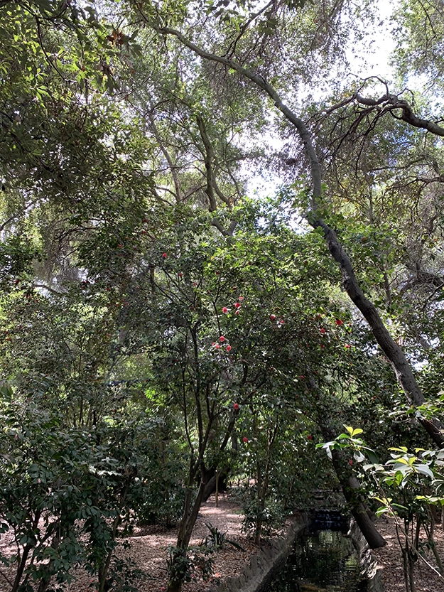 During a visit to the Descanso Gardens a few years ago, I noticed a fragrant bloom of camellias drawing a crowd of admirers. Planted under an impressive stand of oaks, the delicate flowers looked as if to float in space. These two landscapes struck me in their historic connection.
