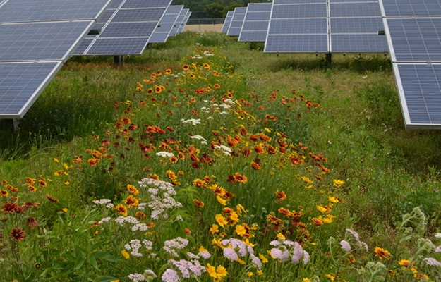 Solar power plants can not only just serve as buffers that reduce other impacts downstream, they can also be ecologically beneficial themselves. Acres of PV panels can be arranged amid native grassland restoration projects that can yield a three-fold increase in pollinators and a two-third increase in carbon sequestration through the landscape. Furthermore, these native grassland projects can increase sediment retention by 95 percent and water retention by 15 percent.
