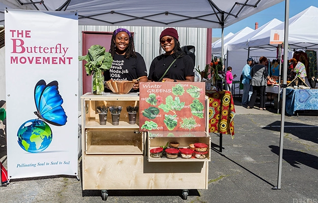 To create more equitable and safe communities in the Bay Area, Van Buren and her team are also co-organizing pop-up villages with custom-crafted wood stalls. "These are temporary projects designed for impact." Visitors can have everything from a breast cancer screening to an AIDS test to a haircut. "These villages help build community relationships, which is how we keep people safe and also support local businesses."