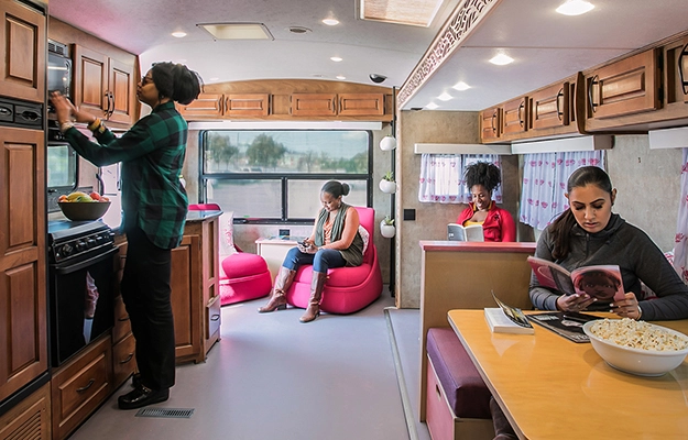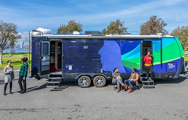 In another project, Van Buren's organization re-imagined a re-entry center for incarcerated women. "When they get out of prison, they are confronted with so many barriers." Her team collaborated with women just released to design a mobile refuge that provides a safe space to get oriented before moving to transitional housing and its dormitory living. The mobile refuge provides therapy and social services.