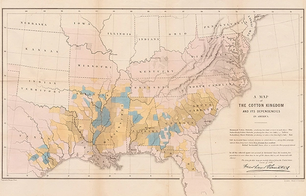 According to John Stauffer, the Sumner R. and Marshall S. Kates professor of English and African and African American studies at Harvard, Olmsted was long interested in social reform, particularly in the South, where he traveled as a reporter for The New York Daily Times, which later became The New York Times. His reporting formed the basis of three books, which were later packaged in a single, more staunchly abolitionist book on the eve of the Civil War: The Cotton Kingdom: A Traveler's Observations on Cotton And Slavery in the American Slave States, 1853-1861. "As a writer focused on slavery, he illuminated the South for the North," Stauffer said. And his writings has enormous political impact: "Olmsted's books convinced England to not recognize the Confederacy."