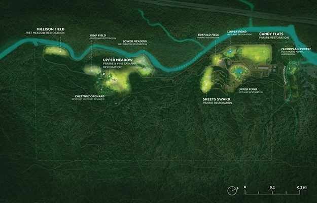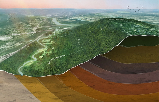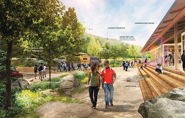 Through a new framework plan, the 317-acre Reflection Riding Arboretum & Nature Center in Chattanooga, Tennessee is being re-imagined as an accessible, equitable educational center that tells the story of the incredible biodiversity of Tennessean landscapes. Once a drive-through arboretum, Reflection Riding is poised to become an important model for ecological restoration and wildlife conservation, with expanded enclosures for wolves and eagles. As part of a six month planning process, SCAPE Landscape Architecture developed a proposal that will re-orient and create new buildings, offer a new entry sequence and visitor center, prioritize restoration areas, and expand a forest school and kindergarten, canopy walks and trails, and a native plant nursery.