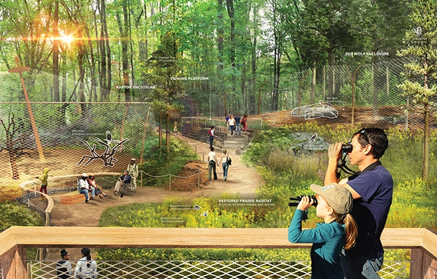 New enclosures for the animals protected in the arboretum's wildlife center won't function like a typical zoo. "While the animal enclosures will be accessible to the public during business hours, Reflection Riding won't be caging animals in small pens. You may or may not see the wolves and raptors when you visit."