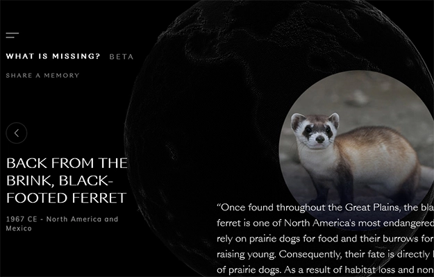 Lin became famous for winning the commission to create the Vietnam Veterans Memorial in Washington, D.C. at the age of 21. In recent years, Lin's interactive art works have deeply engaged with environmental and climate issues. In 2014, she created the powerful web-based piece, What Is Missing?, a virtual memorial designed to raise awareness about the biodiversity crisis -- a site worth exploring in detail.