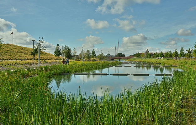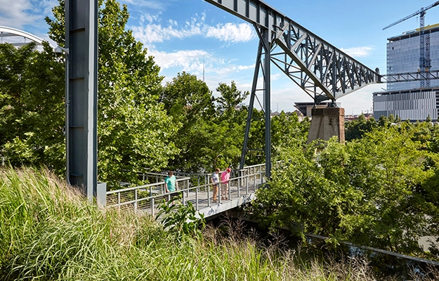 In Nashville, your firm designed the 6.5-acre Cumberland Park as part of a broader riverfront revitalization plan. The park is a model of sustainability and resilience, reuses a bridge structure, sources geothermal, preserves the flood plain, captures and reuses a million gallons of stormwater, remediates toxic soils, and improves biodiversity. How did you make all these pieces fit together?