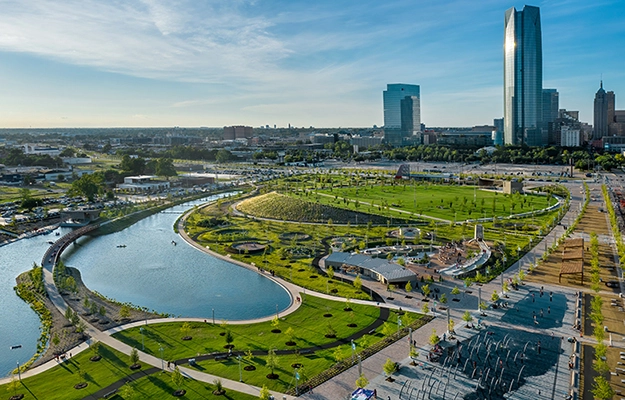 The transformation of Oklahoma City has been accelerated by the 70-acre Scissortail Park, the grand new central park that will connect the city to its waterfront and realize its core to shore plan. How did your firm's design for the park advance the plan?