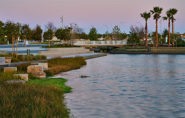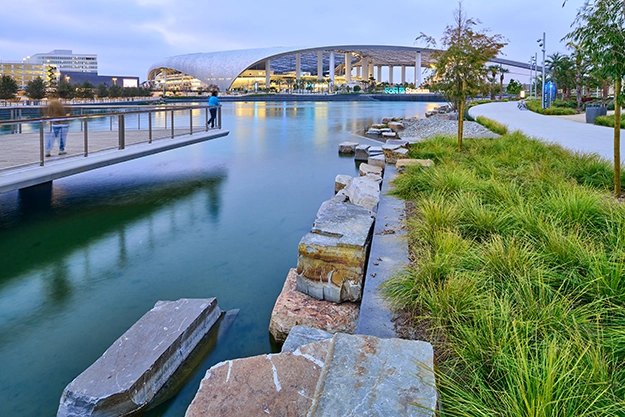 Their case to the developer was either pay a high amount to pipe stormwater to the Pacific Ocean and also pay hefty additional stormwater fees, or "mitigate stormwater on site and create a public amenity," Parekh said. "The lake checked a lot of boxes. It was a win-win situation." The development team was also "firmly committed to a sustainable approach."