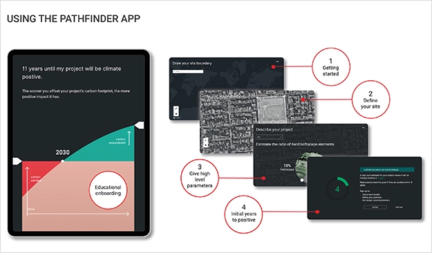 Since its founding, the data in Climate Positive Design's Pathfinder app has only improved. Thousands of projects have been logged in 85 percent of countries. The tool has helped landscape architects find ways to reduce space for carbon-intensive hardscapes and increase carbon-sequestering trees, shrubs, and grasses. This is critical because the data shows that 75 percent of carbon in landscape projects is embodied in materials like concrete and metal furnishings, while 25 percent is driven by operations, caused by fossil fuel-powered lawn movers and leaf blowers, and fossil fuel-based fertilizers.