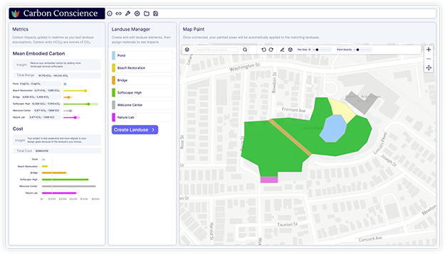 To tackle these obstacles, a team at Sasaki used a year-long internal research grant to explore lifecycle assessments and environmental product declarations, developing the Carbon Conscience App in the process. The tool is meant to help with the preliminary planning decisions that determine a project's long-range carbon footprint. "We are stepping up to help clients integrate this into their work."