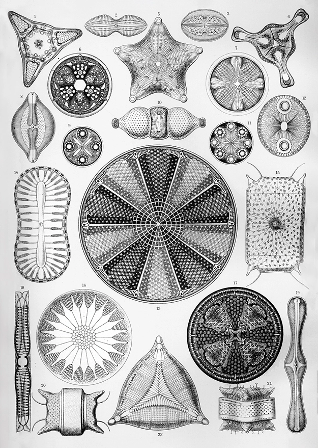 Ridley examines the microscopic wonders created by diatoms, minute algae, and radiolarians, marine zooplankton. She explains that these tiny life forms "use their cell membranes as molds to create mesh frames of hardened silica--structures that are remarkably durable." It easy to see these forms inspiring new kinds of efficient protective materials.