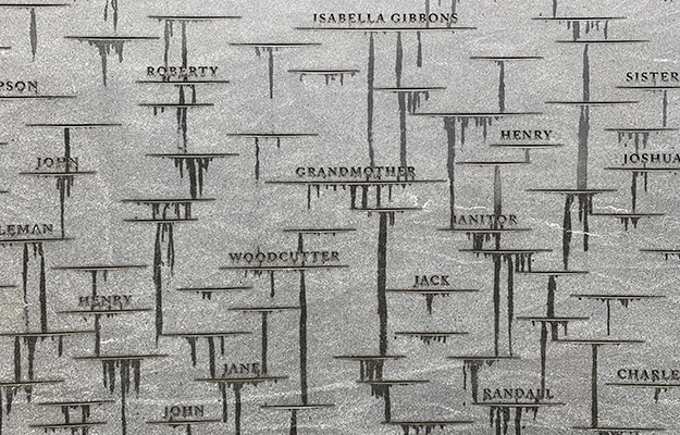 The Memorial to Enslaved Laborers stands in honor and recognition of a buried history that has been honestly brought to the surface and stands in stark contrast to the General Robert E. Lee statue in Emancipation Park. The memorial was designed by Höweler + Yoon Architecture, including Eric Höweler, professor at the Harvard Graduate School of Design and Meejin Yoon, Dean at Cornell University College of Architecture, Art, and Planning. They collaborated with historian and designer Dr. Mabel O. Wilson, professor at Columbia Graduate School of Architecture, Planning and Preservation and founder of Studio&. They also collaborated with Gregg Bleam, FASLA, a landscape architect, community facilitator Dr. Frank Dukes, and artist Eto Otitigbe.