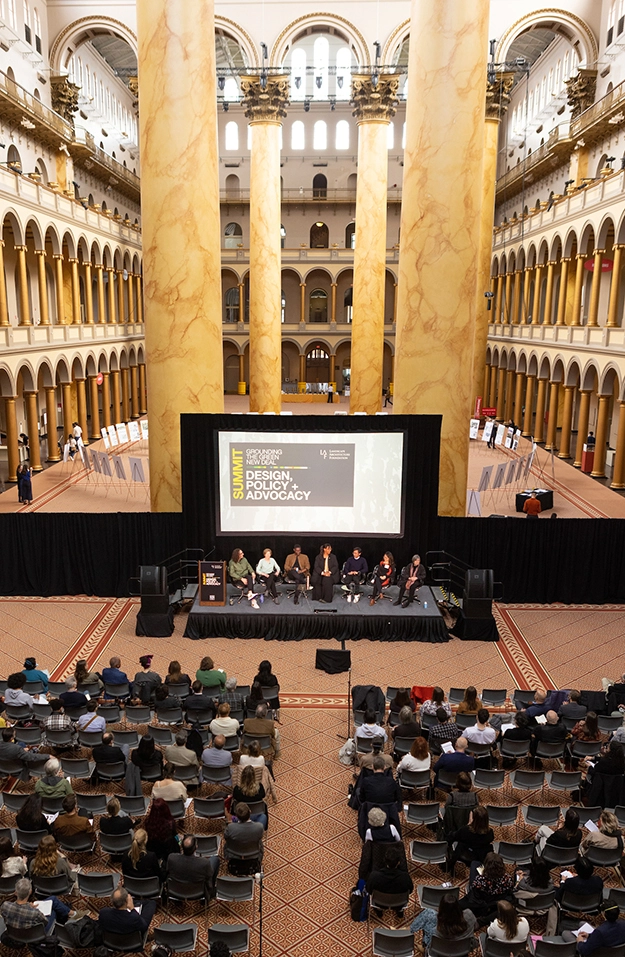 "It's not good enough to just be active designers, we also need to be influencing policy upstream," said Barbara Deutsch, FASLA, CEO of the Landscape Architecture Foundation (LAF), during the kick-off of Grounding the Green New Deal, a day-long summit held at the National Building Museum (NBM) in Washington, D.C. Landscape architects can "create a feedback loop in which we test designs and overcome barriers," advancing climate, water, and infrastructure policy through innovative projects.
