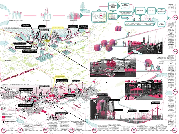 Working under the framework of the Green New Deal was liberating – it meant that we could transcend the constraints of the current market, and a model of practice formulated to serve it. It allowed us to imagine design processes and projects to serve geographies and communities that have been economically, socially, and environmentally abandoned, while considering how we can work differently.