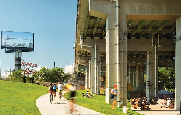 “Landscape architects plan and design walkable environments that are central to reducing urban energy demand and emissions. This work has involved partnering with planning and design professions to pair public transit with transit-oriented development, and integrate Complete Streets, which offer safe, accessible pedestrian and bicycle access, and trails and greenways,” said Torey Carter-Conneen, ASLA CEO.