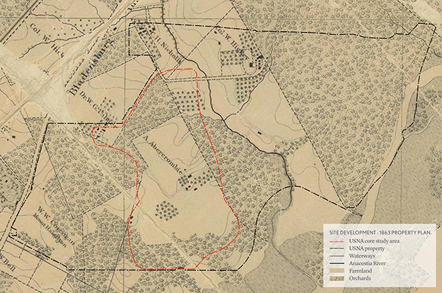 In their extensive research as part of the planning process, Reed noted that they found an earlier property map from 1863, which showed the site's hydrological systems, cropland and orchards. The rural trails through the landscape influenced the roads that were developed for the arboretum. "There have always been human and ecological imprints on this land," Reed said.