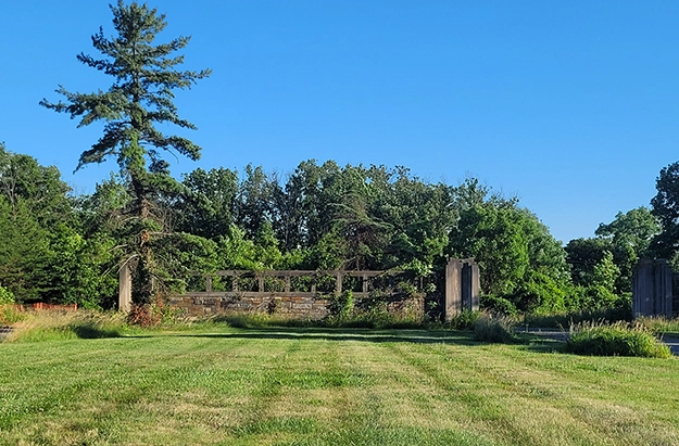 Back in the early days of the arboretum, vehicle drivers would travel off the Baltimore-Washington Parkway, enter Maryland Avenue, and access the arboretum through grand gates. Those gates now appear as relics encircled by opportunistic plants.