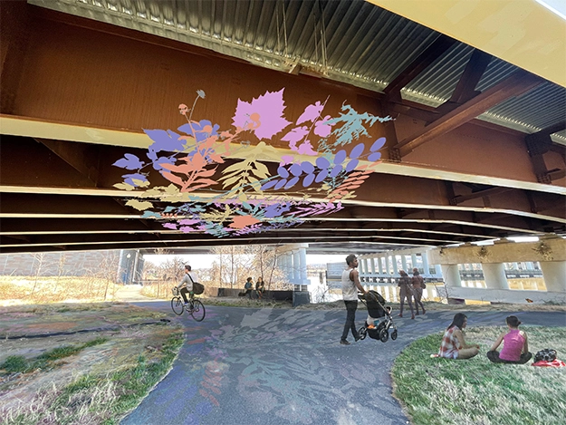 OLIN and OMA were also engaged early in the process to ensure the public art works would be "deeply integrated" into the bridge. "We didn't want to just do plop art," Kratz said. The design team worked closely with the artists to site the works and will continue to partner with them on design, installation, and maintenance.