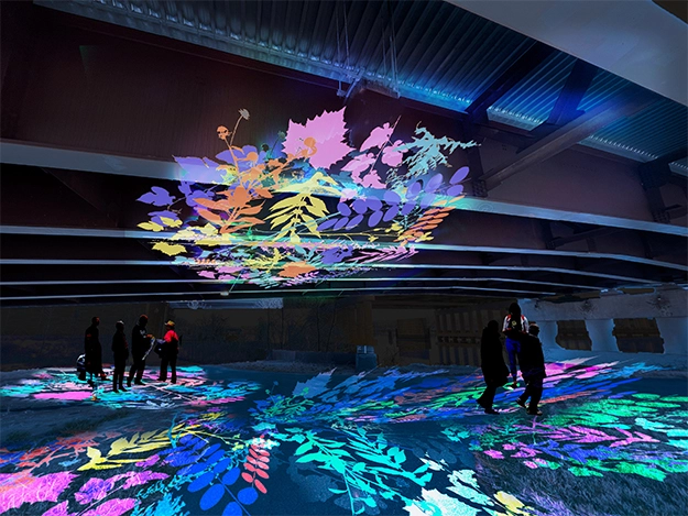 Baltimore artist Becky Borlan created Biophilia, a 10-foot wide disc comprised of "overlapping mirrored cut-outs" inspired by the "native and non-native plant life" that grows along the Anacostia River edge. “Despite hundreds of years of human intervention, this wild flora continues to populate the banks of the Anacostia,” Borlan said. “I am fascinated by its resilience and the multitude of forms that these plants embody.” The disc will be installed under the bridge, near the Anacostia side, and be lit at night.
