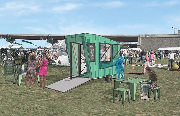 A prototype of the mobile unit will be tested at the Anacostia River arts festival that the bridge park team organizes annually, Kratz explained. "The kiosk will help build a pipeline of Black entrepreneurs in the creative economy ready to engage when the park opens in early 2025," the bridge park team notes.