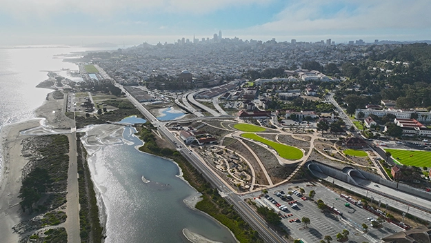 Given San Francisco is an active seismic area, the Presidio Parkway tunnels, which were completed in 2012, had to be engineered for stability. This meant the rest of the adjacent Tunnel Tops landscape, a project that started in 2014, also needed to be engineered in a similar way. "That way, in the event of another earthquake, everything would move as a contiguous system with no differential settlement," Kennedy said.