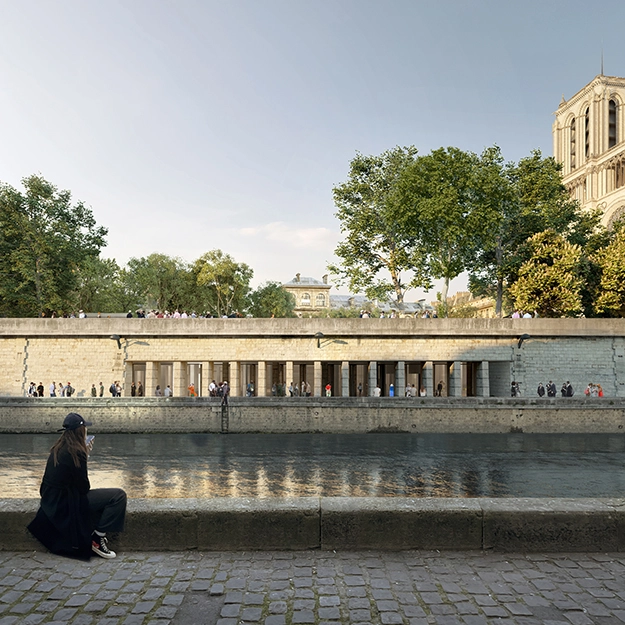 In 2019, the cathedral caught fire, causing the destruction of its 150-foot-tall spire and interiors. The reconstruction of the 760-year-old medieval Catholic cathedral, a UNESCO World Heritage site, has started, but the organizers of the competition, which include the Paris city government; Diocese of Paris; and Public Establishment, the conservators of the cathedral, saw the need to further leverage the landscape to preserve the monument for future visitors and worshippers.