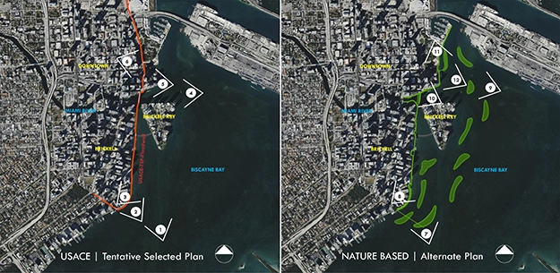 The Army Corps had engaged Miami-Dade County, which includes the City of Miami, in a series of complex feasibility studies to improve resilience against storms, flooding, and sea level rise. In other study areas, south of the city, the Army Corps did propose nature-based solutions, including mangroves, Curtis said.