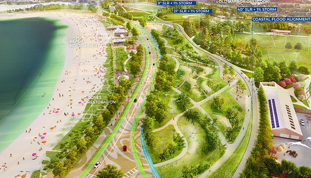 ASLA 2022 Professional Analysis and Planning Honor Award. Moakley Park Resilience Plan. Boston, Massachusetts. Stoss Landscape Urbanism