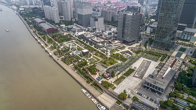 Ambitious park system projects underway in Shanghai and New York City both reimagine former industrial sites as green public amenities. In New York City, Hunter’s Point South, designed by SWA/Balsley and Weiss/Manfredi, and Brooklyn Bridge Park, designed by Michael Van Valkenburgh Associates implement a soft edge made possible by marshes, bridges, and raised walkways that make space for the inevitable flux of water. But most of the Shanghai parks remain, at the government’s direction, lined by the city’s flood wall. In their design of the Shanghai Shipyard Riverside Park, Design Land Collaborative overcame government-established design limitations including the flood wall, as well as work with too-shallow soil depth that were a result of the remediation efforts in which they had no role. Yet despite the constraints, the authors were impressed with the results—the allure of its human scale, the lush planting.