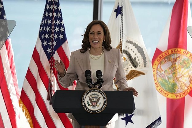 Back in Miami for Earth Day, Harris said "we will restore oyster reefs. And that work will diminish the impact of tropical storms and hurricanes and clean our oceans by filtering out polluted runoff from our cities."