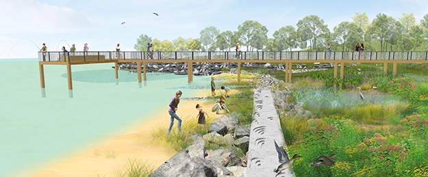 Supermass Studio partnered with the City of Kingston to develop a climate adaptive framework plan for Kingston Point beach and wetlands. The plan will mitigate the threat of sea level rise and provide accessible recreational lands while protecting valuable natural resources.