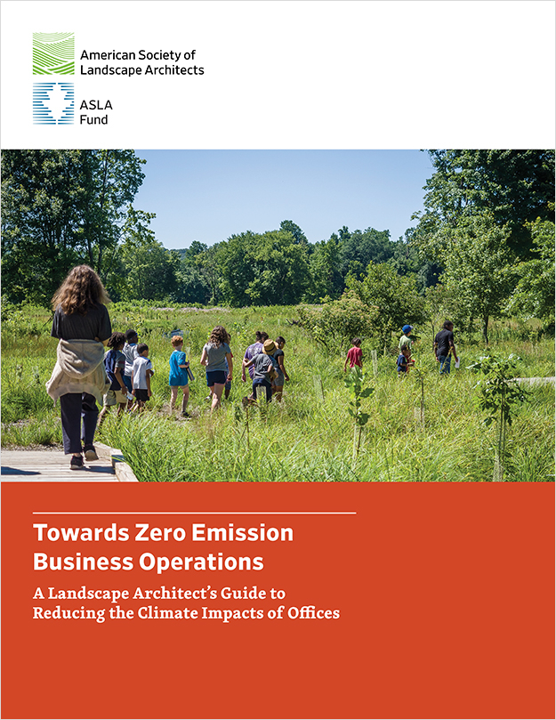 The ASLA Climate Action Committee produced Towards Zero Emission Business Operations to support landscape architecture firms in achieving the goals of the ASLA Climate Action Plan.