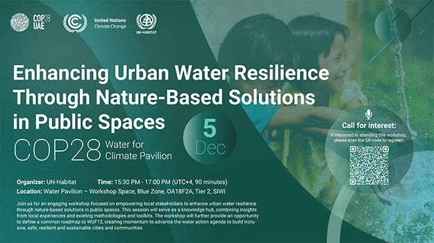 Enhancing Urban Water Resilience through Nature-based Solutions in Public Places Tuesday, December 5 6.30 AM EST - 8:00 AM EST / 3:30 PM -5:00 PM GST UN-Habitat